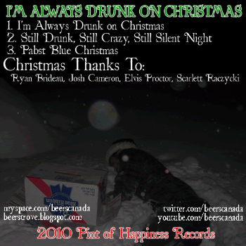 "I'm Always Drunk on Christmas" is the seasonal companion piece to a few weeks ago's "I'm Always Drunk". Recorded all in Clinton, Ontario in Mikey's bedroom, the album offers three new Mikey tunes spiked with a little holiday flavour (and whiskey): the title track is a joking parable on the perils of traditional Christmas sloppiness, "Still Drunk, Still Crazy, Still Silent Night" is a festive fusion of a Scott H. Biram tune and a gospel classic, and "Pabst Blue Christmas" is just what you'd expect from Mikey by this point. As an extra bonus, the album comes with THREE interchangeable covers to choose from for your festive fancy. So get real close to the tree, get a hot mug of cocoa or beer, and let Mikey swoon your season with some soon-to-be Christmas classics for FREE DOWNLOAD!